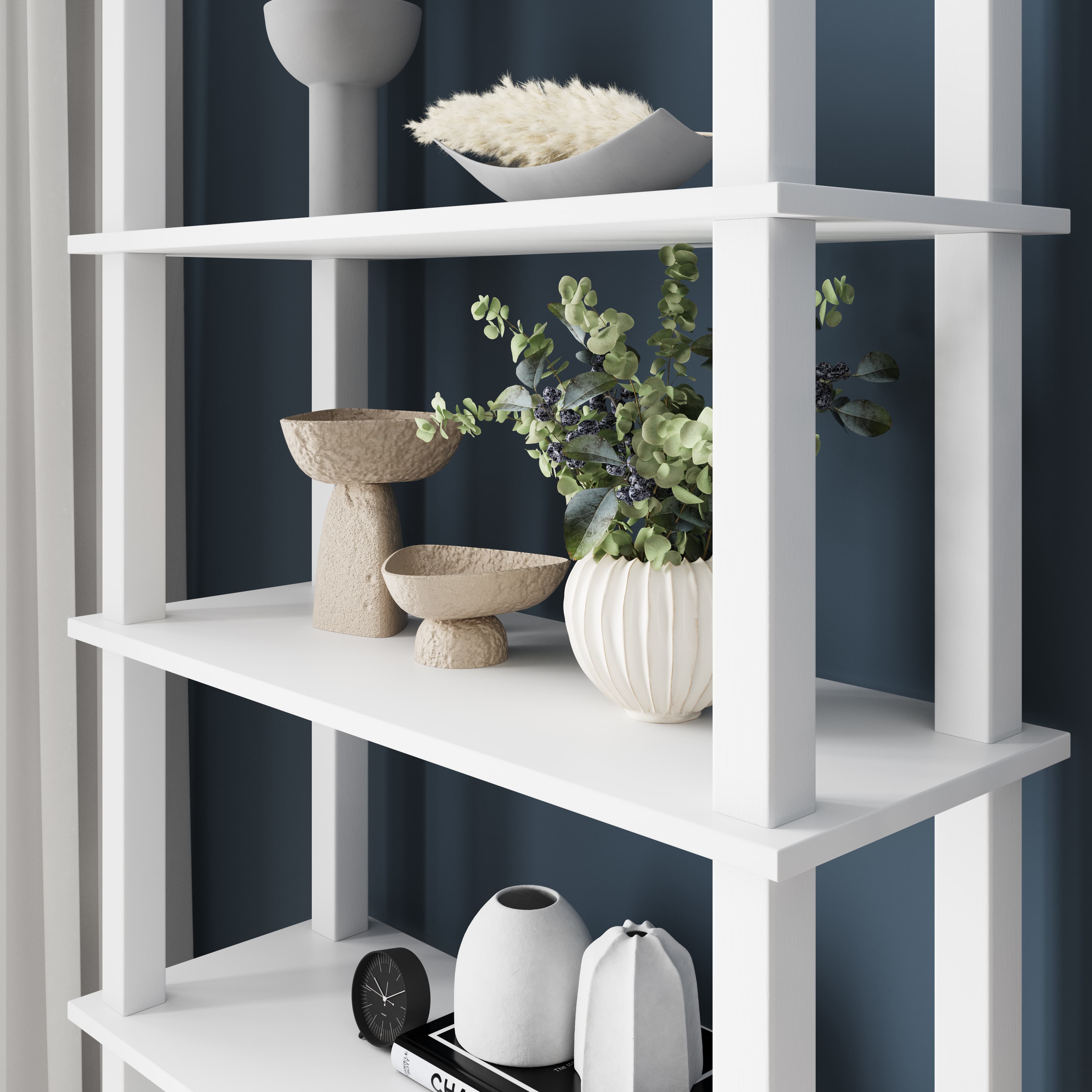 Valge ESTADESIGN riiul ühendab põhjamaise minimalismi ja Eesti meistrite käsitöö. Kvaliteetsest täispuidust valmistatud riiul on vastupidav, stabiilne ja loodud kestma põlvest põlve. Seitse avatud tasapinda pakuvad rohkelt ruumi raamatutele, sisustuselementidele või kõigele, mida soovid nähtaval hoida.